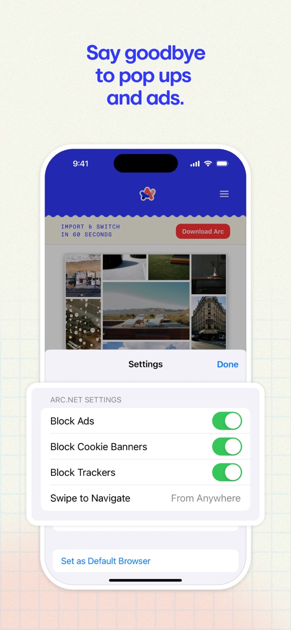 قادنا هذا الإدراك إلى تطوير Arc Browser، وهو متصفح ليس أسرع فحسب، بل إنه أيضًا أكثر شخصية وتركيزًا وإبداعًا. يجسد رؤية للبساطة، حيث يزيل الارتباك الناتج عن كثرة علامات التبويب وفوضى الإنترنت لإنشاء تجربة إنترنت أكثر كفاءة، تواكب حياتنا التي تزداد ارتباط بالإنترنت!.